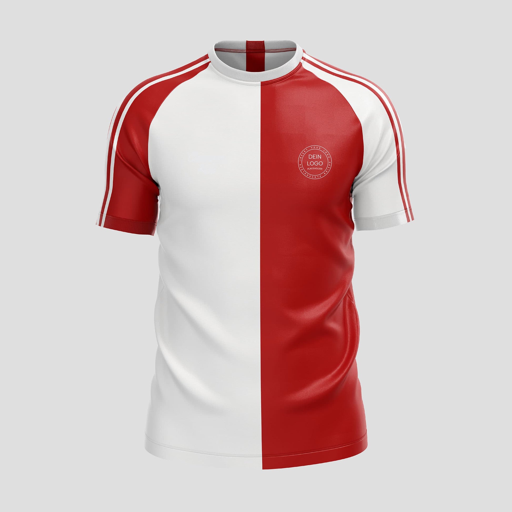 Es kann manchmal so einfach sein: Rot-weiße Blöcke. Dieses Trikot-Hosen-Set setzt auf ein simples, aber extrem lautes Design, das klare Kante zeigt.